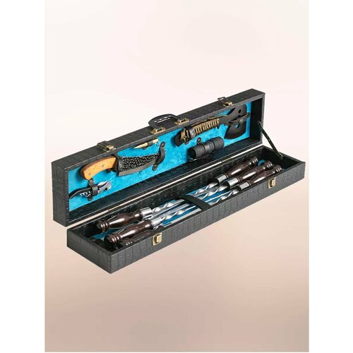 Шашлычный набор подарочный в кейсе № 20 от GRILLS FACTORY. На 4 персоны, с синим велюром внутри