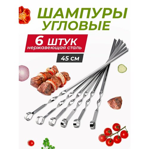 Шампуры для мангала , набор для шашлыка из 6 угловых шампуров 45 см