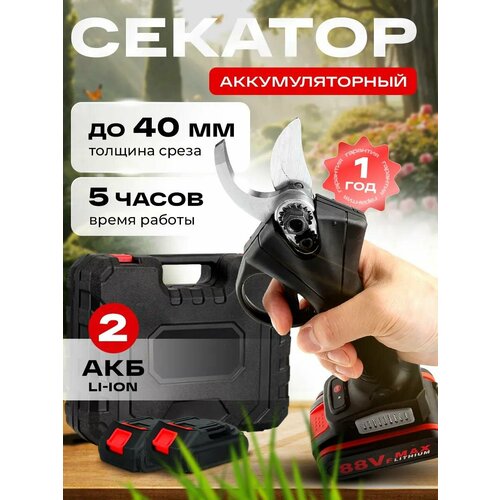 Секатор аккумуляторный садовый мощный, электросекатор бесщеточный, электрический секатор, сучкорез профессиональный 2АКБ