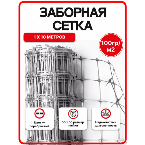 Заборная сетка пластиковая 1х10м 50х50мм серебристая 100гр/м2 садовая, для забора, для клеток 4620214451120
