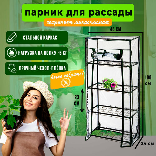 зеленыйЭтот стеллаж-парник для рассады и цветов станет вашим незаменимым помощником в создании зелёного уголка на подоконнике или балконе. Компактный и лёгкий, он оснащён тремя полками, которые позволяют удобно разместить ваши растения. Металлический каркас обеспечивает прочность и устойчивость, а чехол из ПВХ-пленки создаёт оптимальные условия для роста. Парник для рассады оснащён застёжками-молниями, что облегчает доступ к растениям и позволяет регулировать вентиляцию. Решетчатые полки способствуют свободной циркуляции воздуха, что особенно важно для здорового роста растений. Лёгкость конструкции, весом всего 1,3 кг, позволяет без труда перемещать его по дому. Время сборки составляет всего 5 минут, и не требует инструментов. Этот мини-парник подходит для выращивания микрозелени, овощей и цветов, а также для черенкования. Расстояние между полками составляет 23 см, что позволяет разместить даже высокую рассаду, сняв верхнюю полку. Используйте его как напольный стеллаж или подставку для цветов на подоконнике, чтобы с