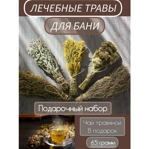 Подарочный набор банных веников "Лечебные Травы" ручной работы, 5штук, желтый