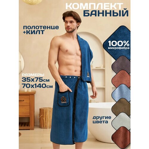 Мужской Набор для бани и сауны килт и полотенце 2в1