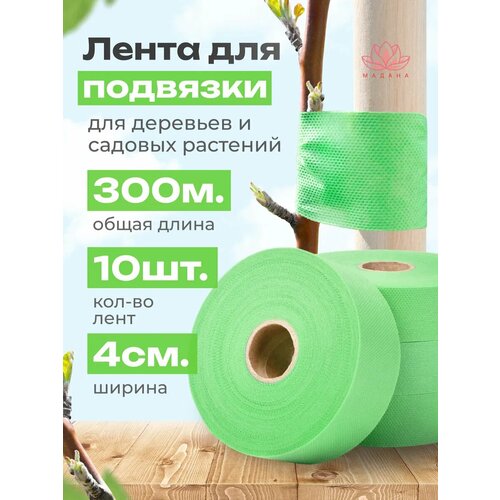 Садовая лента для подвязки зеленая 60гр/м2, ширина 4см, длина 30м 10 штук