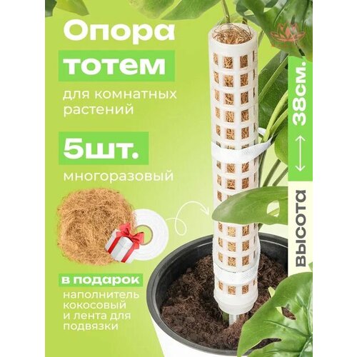Кокосовая опора для растений гибкая, Декоративная опора для вьющихся комнатных растений 60см, 1 шт