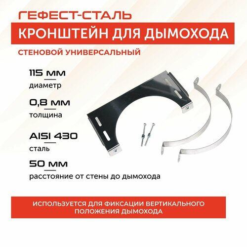 Кронштейн стеновой, универсальный, 115, AISI 430/0,8мм, Е 50мм
