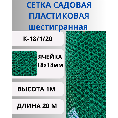 Сетка пластиковая садовая шестигранная яч.18х18 рулон 1х20м Зеленый