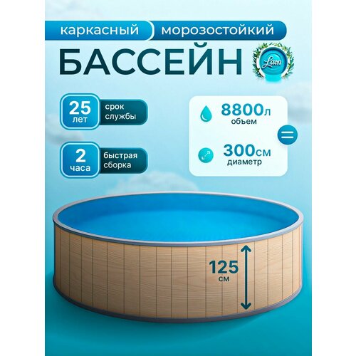 Бассейн морозоустойчивый каркасный 300х125 лаон, цвет каркаса - орех монблан, чаша ПВХ 0,4 мм