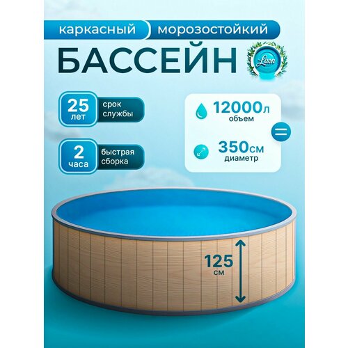 Бассейн морозоустойчивый каркасный 350х125 лаон, цвет каркаса - орех монблан, чаша ПВХ 0,4 мм