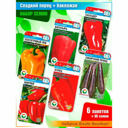 Набор семян сладкого перца и баклажана от Сибирского сада (6 пачек)