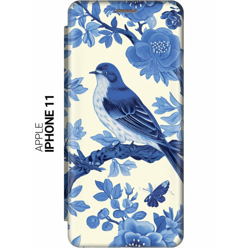 Чехол-книжка на Apple iPhone 11 с принтом "Птички" золотой