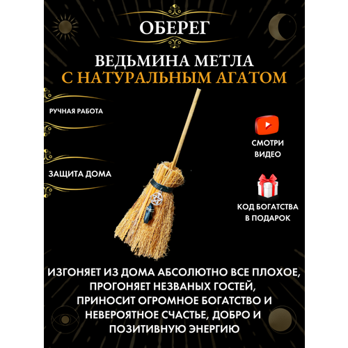 Оберег для дома Ведьмина метла с пентаграммой и натуральным агатом