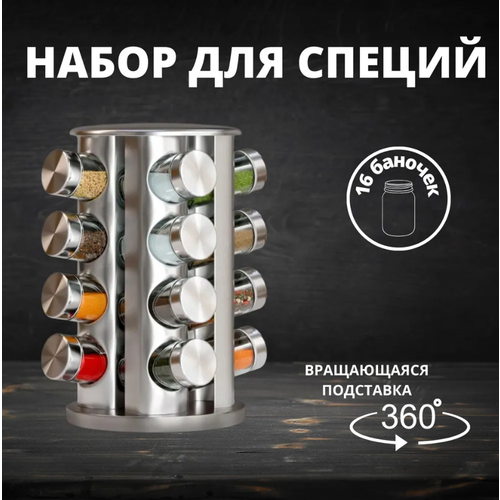 Набор баночек для специй и сыпучих продуктов на вращающейся подставке, 16 шт