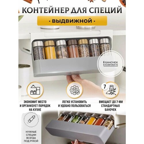 Выдвижной органайзер для хранения специй с 6 баночками в комплекте