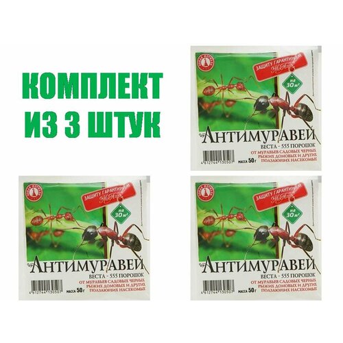 Комплект из 3 штук средство от садовых и домашних муравьев Антимуравей порошок МосАгро 50г