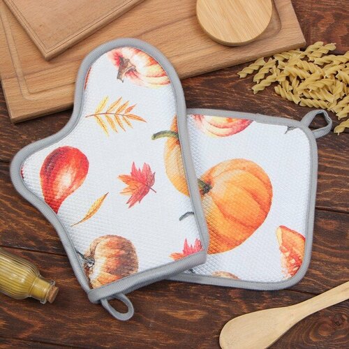Кух. набор 2 пр. Этель Тыквы прих. 20*20 см, вареж-прихв. 27*20 см,100% п/э