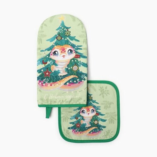 Набор кухонный Этель Wonder christmas варежка 20х28см, прихватка 19х19см,100%хл