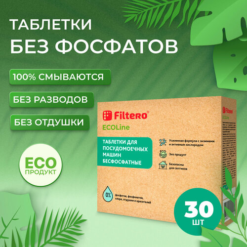 Таблетки для посудомоечных машин бесфосфатные Filtero Ecoline, 30шт.