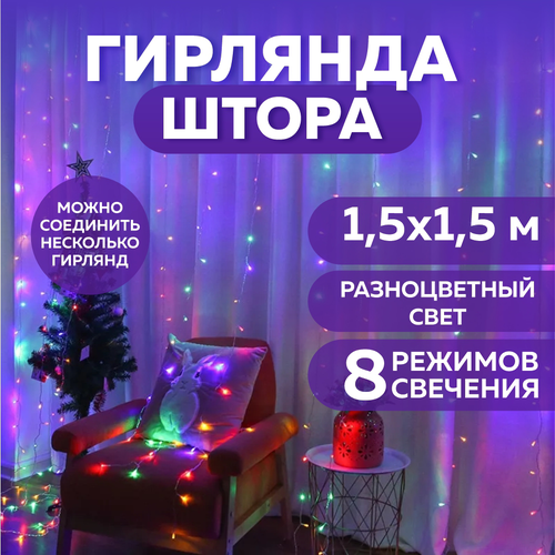 Гирлянда штора гирлянда занавес размер 1,5м*1,5м