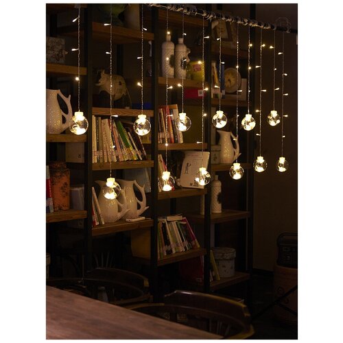 Электрогирлянда шары занавес теплый свет