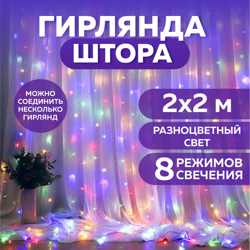 Гирлянда штора гирлянда занавес размер 3м*3м раноцветный свет