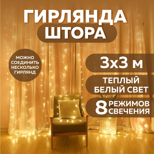 Гирлянда штора гирлянда занавес размер 3м*3м теплый свет