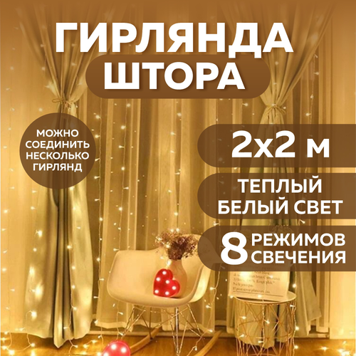 Гирлянда штора гирлянда занавес теплый белый 2м*2м