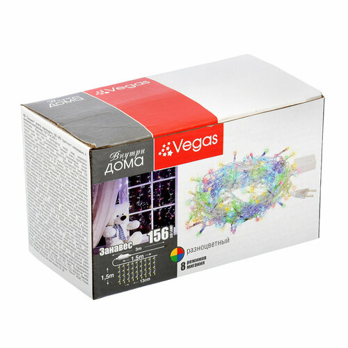 Светодиодная гирлянда для дома (мультиколор) Vegas Занавес 156 LED, 12 нитей, 1,5х1,5 м, 220V 55076