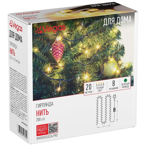 Электрогирлянда вегас нить 200 теплых ламп контроллер 8 режимов зеленый провод 20 м 550