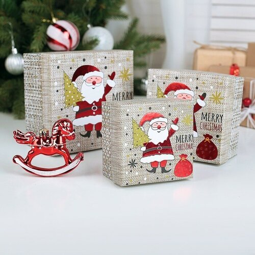 Набор коробок 3 в 1 «С Рождеством!», 13 х 13 х 8 - 9 х 9 х 6 см