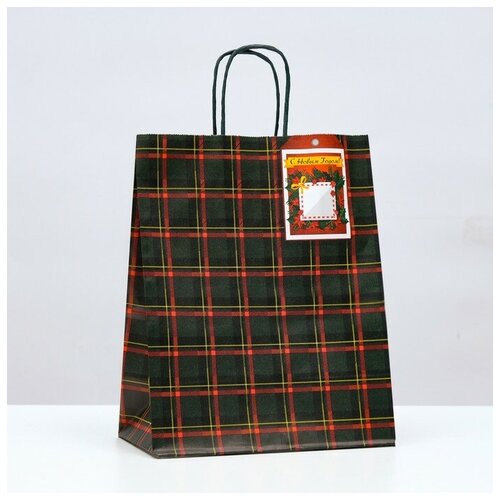 Пакет крафт "Зелёная клетка" 22 х 12 х 27 см