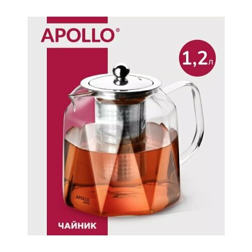 Чайник заварочный стекло, 1.2 л, с ситечком, Apollo, Cenio Bombori 455631