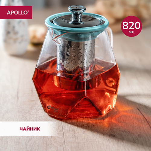 Чайник заварочный стеклянный с металлическим ситом APOLLO genio "Grape-Shape" 820 мл, голубой