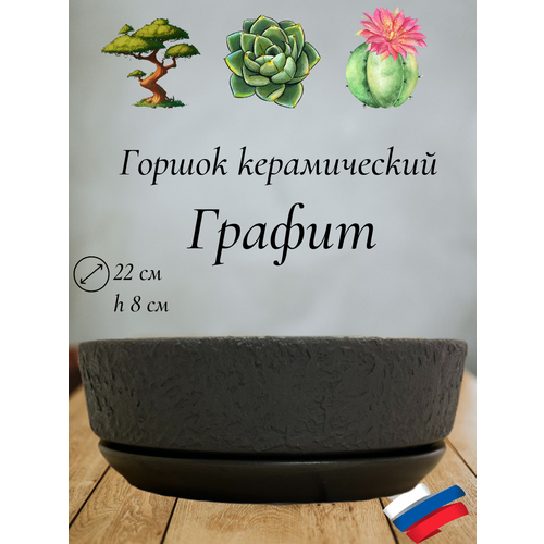 Керамический горшок "Графит" для бонсай, кактусов и суккулентов, диаметр 22 см, высота 8 см