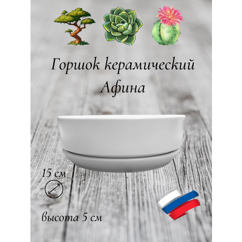 Керамический горшок "Бонсай - Афина" для бонсай, кактусов и суккулентов, диаметр 15 см, высота 5 см