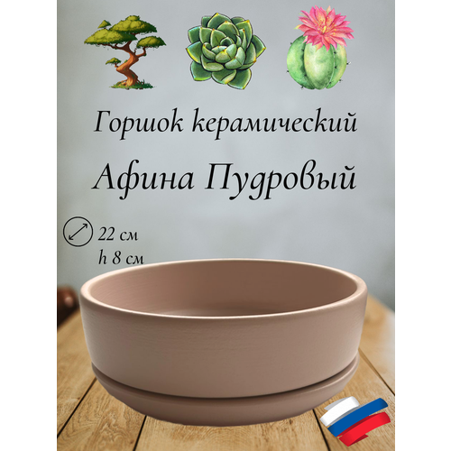 Керамический горшок "Афина Пудровый" для бонсай, кактусов и суккулентов, диаметр 22 см, высота 8 см
