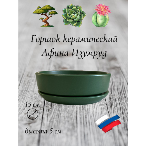 Керамический горшок "Афина Изумруд" для бонсай, кактусов и суккулентов, диаметр 15 см, высота 5 см