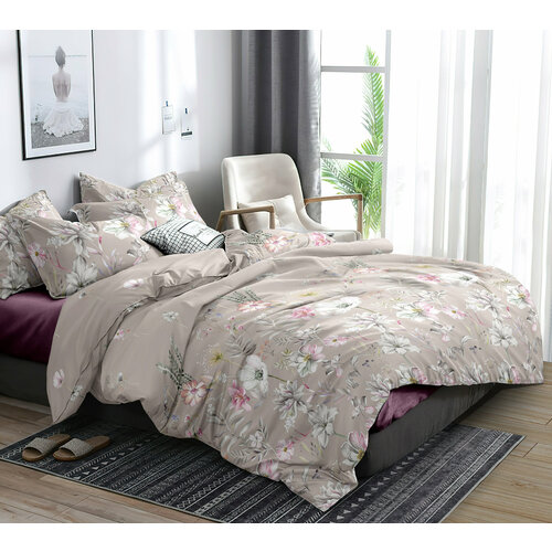 Комплект постельного белья Павлина Манетти полисатин однотонный, 1,5-спальный (серый/бежевый) S45