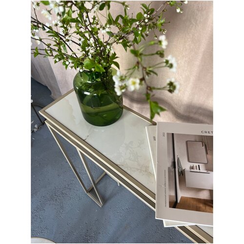 металлКонсоль модель MOONI. Размеры: 110/23, высота 90 см. Материал столешницы комплекта типа ONIX - керамогранит под камень оникс. ONIX- керамогранит, с фактурой имитирующей камень оникс, глянцевый. Столешница вставлена внутрь профиля. Основание: металлический профиль сечение 15/15 мм. Цвет основания: бронза матовый. Без подложки снизу столешницы. Керамогранит - красивый и прочный материал, имитирующий фактуру мрамора. Устойчив к царапинам, пятнам. Рисунок столешницы различается в каждом конкретном изделии ввиду уникальности и неповторимости материала. Рекоммендации по уходу: уборка влажной тряпочкой без использования агрессивных моющих средств. если У ВАС есть вопросы ПО цвету товара: ВЫ всегда можете задать вопрос через кнопку вопросы ПО товару, а также связаться С нами через официальный сайт бренда LUCHI И получить подробную консультацию менеджера.