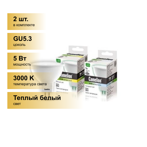 (2 шт.) Светодиодная лампочка Camelion MR16 GU5.3 220V 5W(370lm 100гр.) 3000K 2K матов. 49x50 пластик LED5-S108/830/GU5.3