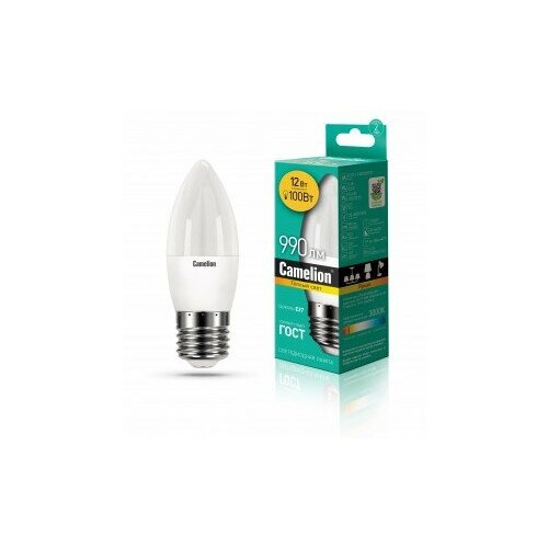 Светодиодная LED лампа Camelion Свеча E27 12W (990lm 220°) 3000K 2K матовая 107x38 пластик LED12-C35/830/E27 (упаковка 10 штук)
