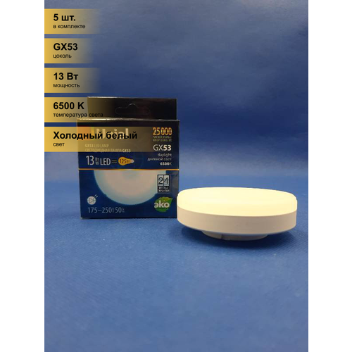 (5 шт.) Светодиодная лампочка Uniel GX53 св/д 13W(1150lm) 6500K 6K 75х28 матовая LED-GX53-13W/6500K/GX53/FR