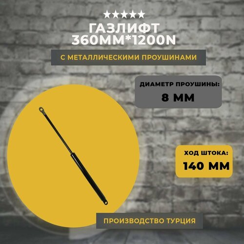 Газлифт 360 мм 1200N проушина 8 мм, 1 шт