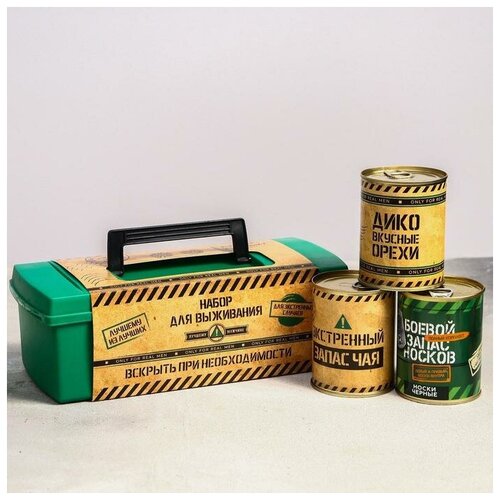 Набор в ящике для инструментов «Выживание»: арахис 200 г, чай 60 г, носки 43 р