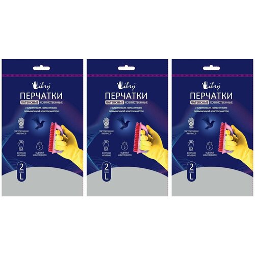 LIBRY Перчатки латексные с хлопковым напылением эластичные, премиум, размер L - 6 шт