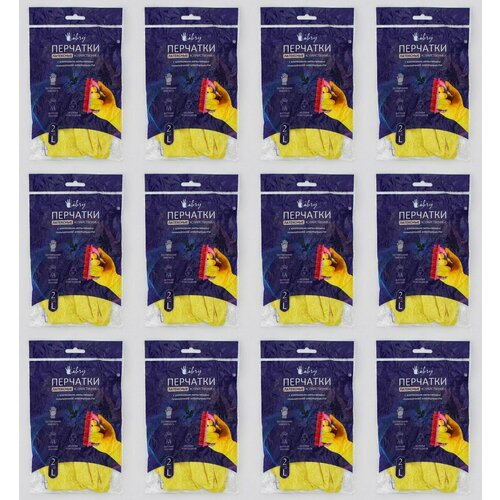 LIBRY Перчатки латексные Высокая прочность с х/б напылением желтые р. L - 12 штук