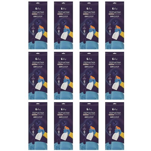 LIBRY Перчатки латексные биколор сине-желтые р. L - 12 штук