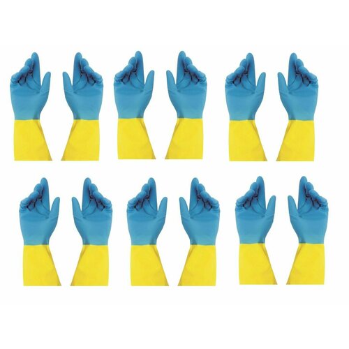 LIBRY Перчатки хозяйственные, латексные, биколор, сине-желтые, Xl, 9 шт