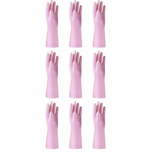 Виниловые розовые хозяйственные перчатки, размер М, 3 пары