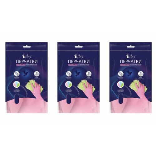 LIBRY Перчатки виниловые сверхпрочные, размер L, 3 цвета - 6 шт
